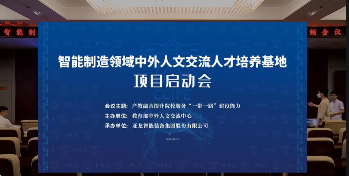 2020年5月25日,由教育部人文交流中心主办,亚龙智能装备集团股份有限公司承办的“智能制造领域中外人文交流人才培养基地项目”启动会以在线方式正式启动了,全国178所院校参加了此次盛会。