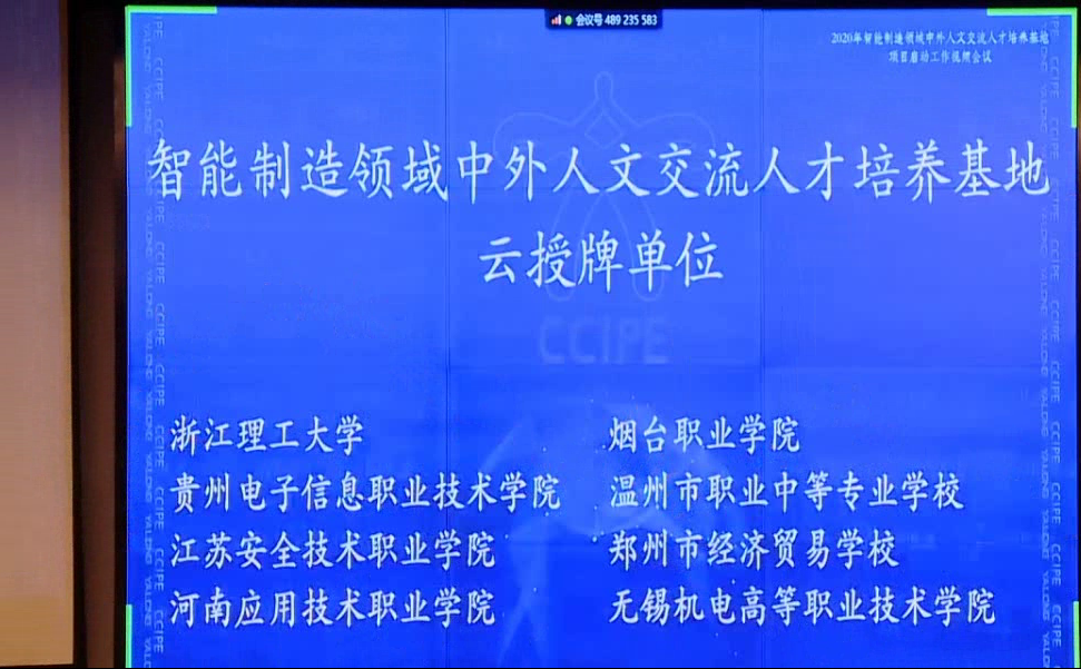 本次授牌遴选全国8所院校进行了云签约,我校被授予“智能制造领域中外人文交流人才培养基地-亚龙智能国际学院”。