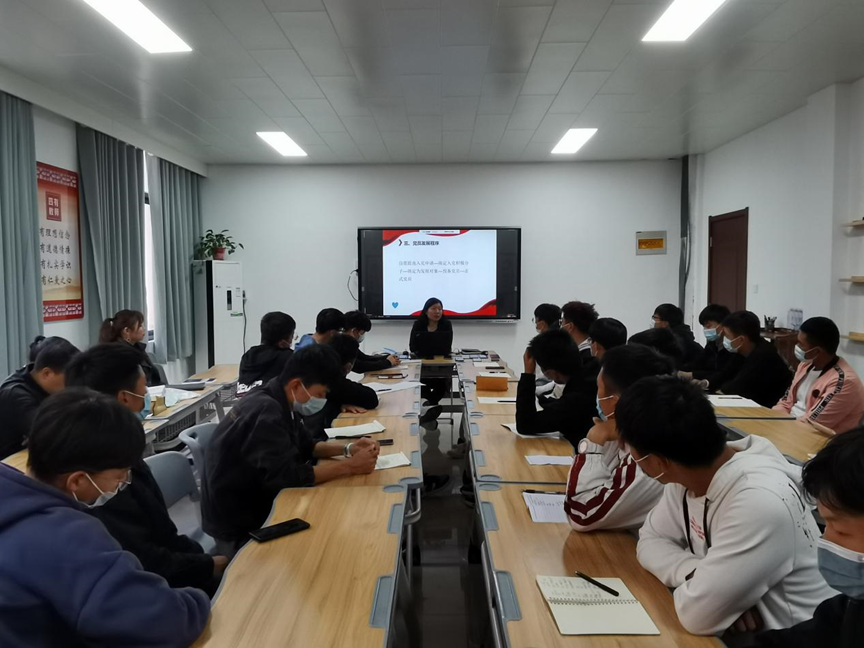 活动第一个环节,由学工部主任郭娇娇老师讲解《如何适应大学生活》和《安全知识》。她首先讲到,同学们应该首先熟悉校园环境和大学生活方式,再给自己制定一个大学生活目标和完成策略,同时还要有责任感,通过沟通交流,不断提高自己的综合素质,充实度过自己的大学生活。然后,郭老师从宿舍安全、交通安全、网络安全、实训安全、交友安全和财务安全等方面进行了全面提醒,同时强调同学们务必始终把安全放在首位。