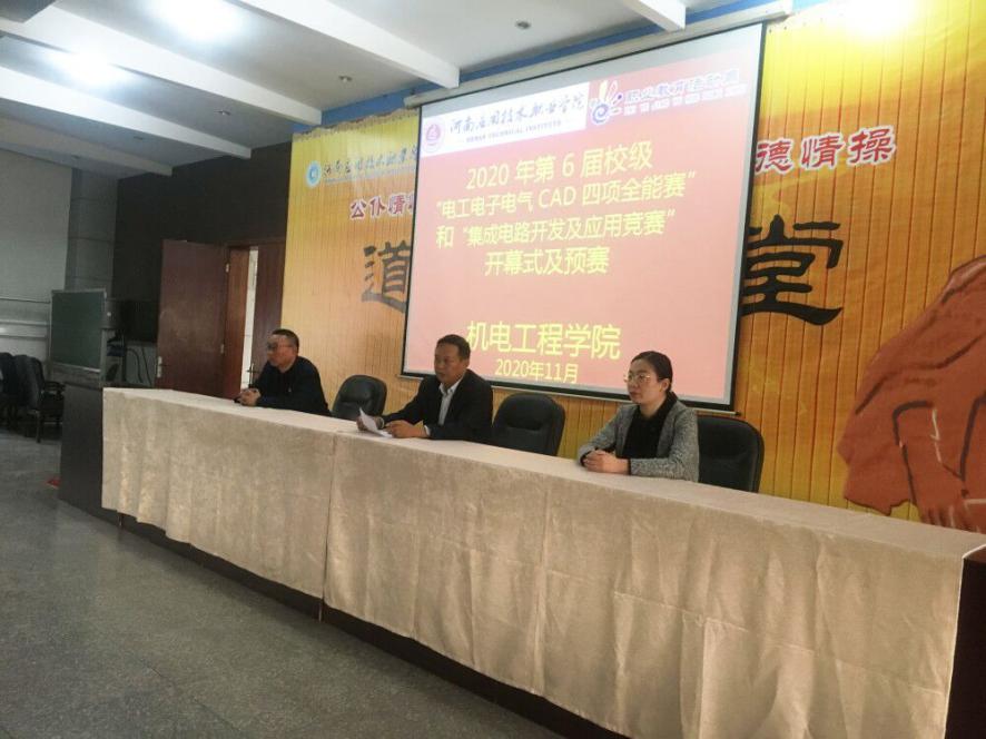 为大力弘扬劳动光荣、技能宝贵、创造伟大的时代风尚,进一步营造全社会关心支持职业教育的良好氛围,以“人人出彩,技能强国”为主题的2020年职业教育周活动于11月8日正式开始,AC米兰中文官方网站积极参与,11月9日下午举办了2020年第六届校级“电工电子电气CAD四项全能赛”和“集成电路开发及应用竞赛”的开幕式,AC米兰中文官方网站院长黄双成、副院长李凤银及教务办公室主任孙彩云参与开幕式,并指出此活动目的在于弘扬劳动光荣、技能宝贵、创造伟大的时代风尚,形成“崇尚一技之长、不唯学历凭能力”的良好学习氛围。