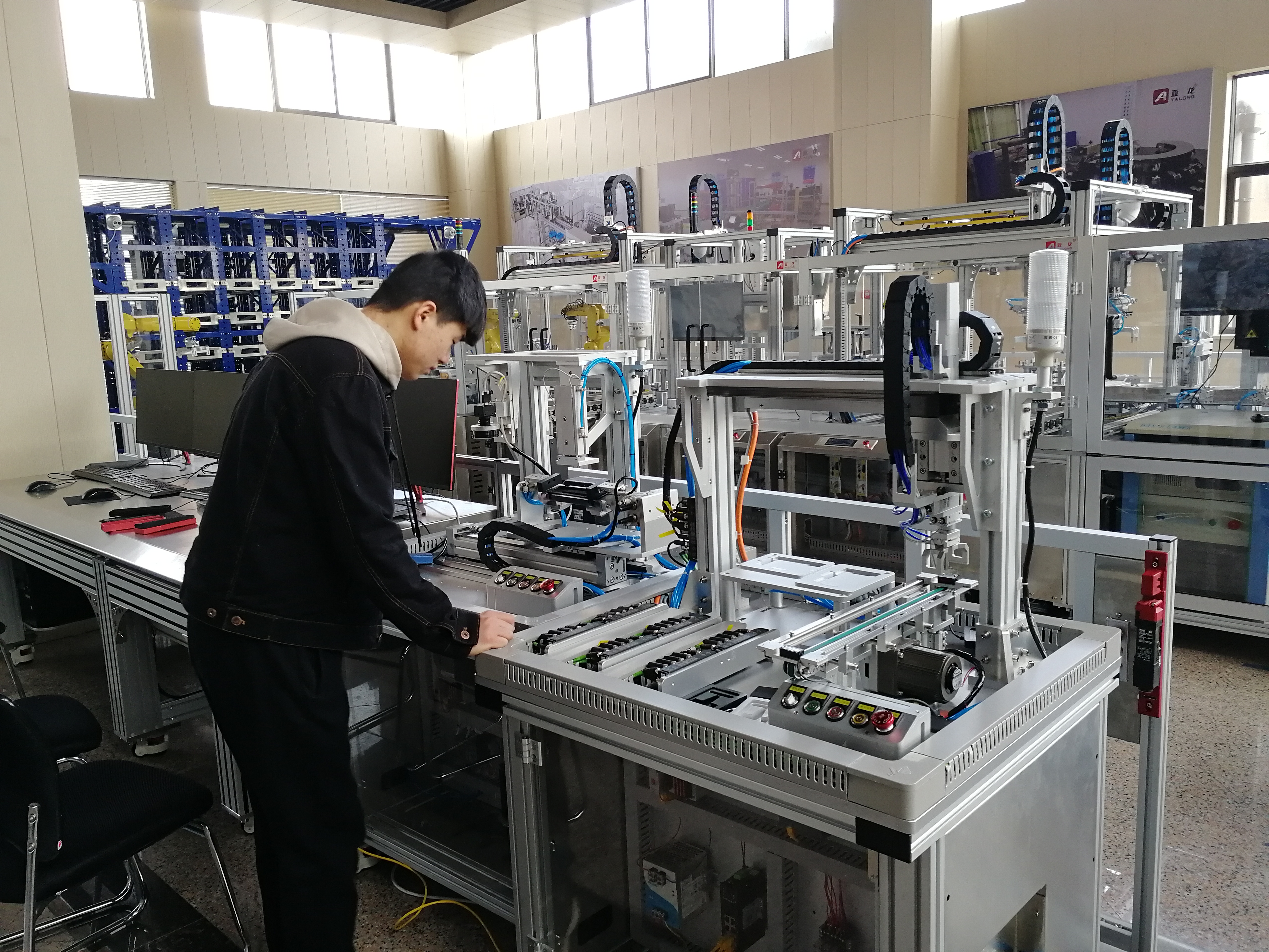 为了适应“中国制造2025”背景下职业教育培养技术技能人才的需要,深入产、教、研一线,学习先进的智能制造技术,增加教师和学生的专业素养,2019年3月4日至3月10日,AC米兰中文官方网站梅二召老师带领机电一体化技术杰出人才班优秀学生代表李明到浙江亚龙教育装备研究院进行实地见习。