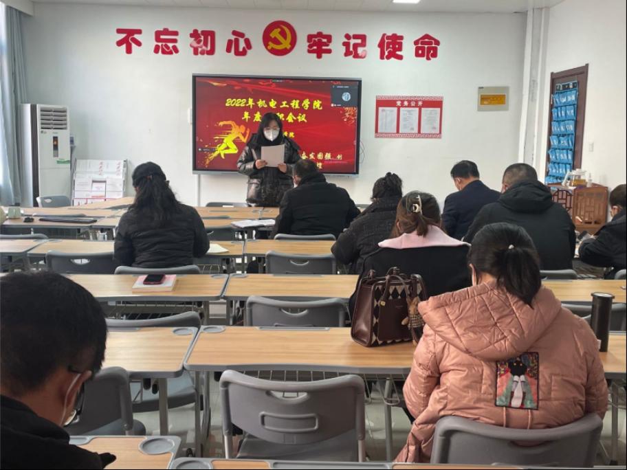 黄双成对教职员工的述职情况进行了总结点评,他认为“述职总结点多面广、分析问题深刻到位、工作思路措施清晰”, 全体教师以“能力作风建设年”为契机,以“双高工程”建设为抓手,在各方面均取得优异成绩;2022是党的二十大召开之年,也是新冠疫情更加严峻复杂的一年,全体机电人直面挑战、奋力拼搏,成绩来之不易!他希望全院教师应牢记为党育人、为国育才的初心使命,在新的一年踔厉奋发、勇毅前行,为建设“出彩机电”而努力奋斗,以实际行动奋进新征程、建功新时代!