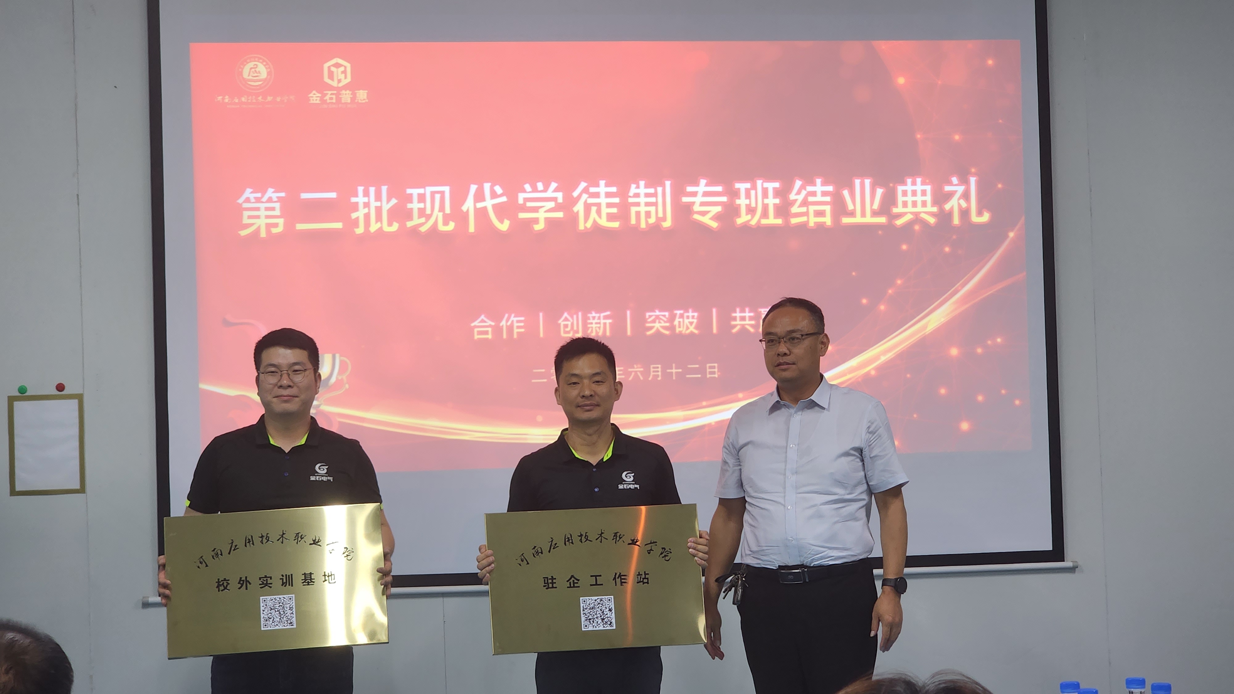 夏树苍翠,晨光熹微。AC米兰中文官方网站AC米兰中文官方网站与河南金石普惠科技有限公司联合举办的第二批现代学徒制专班结业典礼,于2024年6月13日在河南金石普惠科技有限公司顺利举行。AC米兰中文官方网站副校长黄振中、河南金石普惠科技有限公司总经理王晨辉等领导参加了上述活动。