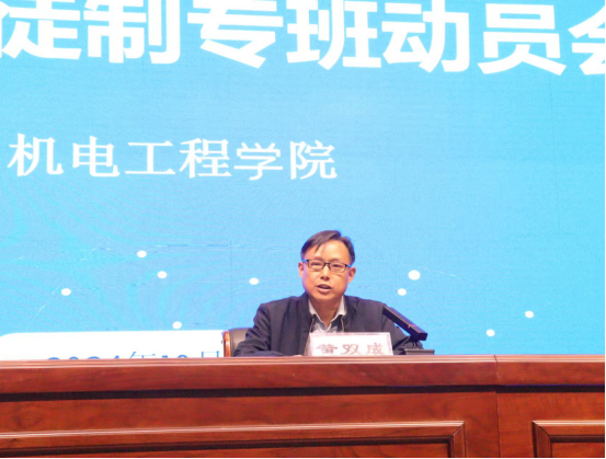 最后,黄双成对现代学徒制专班的培养模式、所获成绩做了深度介绍。他指出,现代学徒制专班是学院与企业合作的重要成果,它秉持着“双主体育人、双导师教学、工学交替、岗位成长”的核心精神,是学院人才培养模式改革的重要举措。学校提供系统的理论知识教育,为学生奠定坚实的专业基础;企业则发挥实践基地的优势,让学生在真实的工作环境中进行实践操作,提升他们的实际技能。同时,实行双导师制度,学校的教师负责传授理论知识,企业的导师则给予实践指导,两者相辅相成,共同助力学生的成长。他强调,学院将不断深化校企合作,加强与企业的沟通与交流,共同制定人才培养方案,共同组织教学和实践活动,共同评价学生的学习成绩和职业能力。他希望同学们能够积极参与现代学徒制专班的学习和实践活动,不断提高自己的职业素养和就业竞争力。