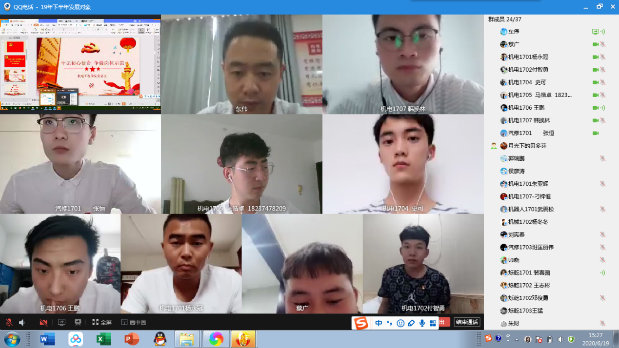 为响应“两学一做”学习教育常态化制度化要求,全面贯彻落实国家关于高校思想政治工作部署,不断提高党员综合素质,充分发挥学生党员的先锋模范作用,根据学校工作部署,AC米兰中文官方网站党总支于2020年6月19日下午3点,通过qq分享屏幕形式对2020届毕业生党员开展“牢记初心使命,争做岗位示范”再教育活动。会议由党总支副书记邓艳丽主持。会议共分为五个部分。