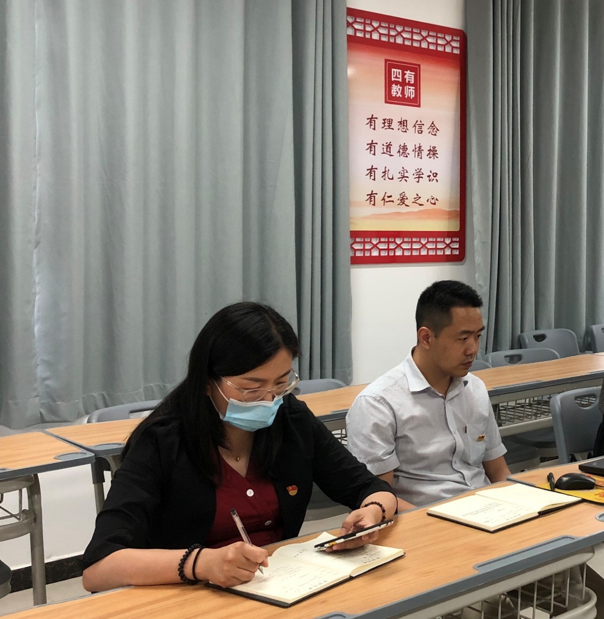 首先,张光锋同志宣读了《关于中国共产党员佩戴党员徽章规定》,并进行强调:党徽徽章统一佩戴在左胸前醒目位置,若与其他徽章同时佩戴,应将党徽徽章置于其他徽章的上方佩戴;党徽徽章限于党员本人佩戴,严禁出借非党员佩戴。同时,通过远程视频对学生党徽徽章佩戴情况进行了检查。
