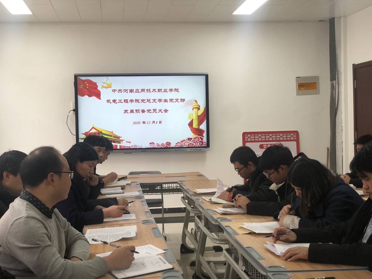 2020年12月8日,AC米兰中文官方网站学生党支部在AC米兰中文官方网站党员活动室召开了党支部大会,讨论接收张朝伟等15名同志为预备党员的问题。会议由党总支书记邓艳丽同志主持。