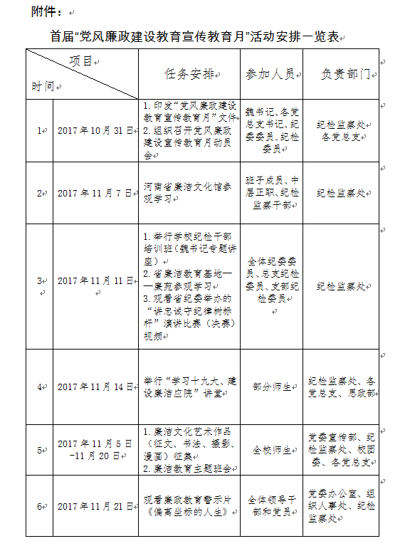 1.及时总结整理各项活动材料,并在11月31日前,向纪检监察处上报“宣教月”活动总结;