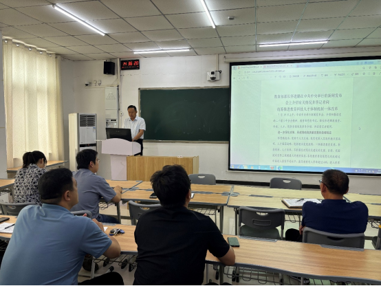AC米兰中文官方网站院长黄双成带领大家学习了《教育部部长怀进鹏在中共中央举行的新闻发布会上介绍有关情况并答记者问 统筹推进教育科技人才体制机制一体改革》《中共中央 国务院关于弘扬教育家精神加强新时代高素质专业化教师队伍建设的意见》两个文件。