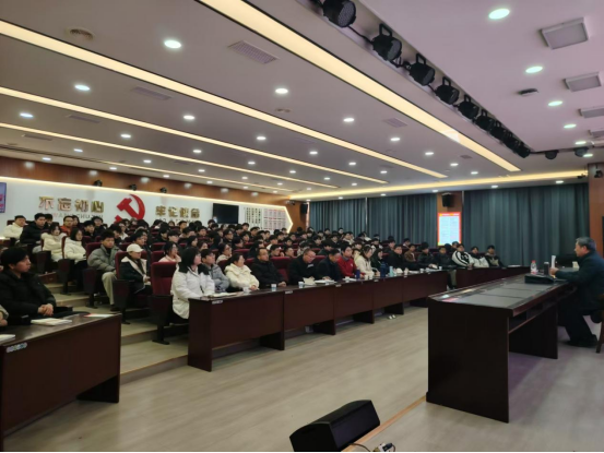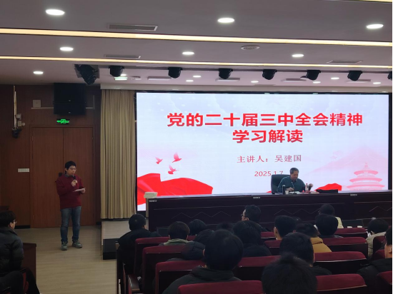 为深入贯彻党的二十届三中全会精神,引导广大党员教师和学生深刻领悟全会精神实质,增强责任感与使命感, 1 月7日下午,AC米兰中文官方网站党总支在 B 楼 2 楼报告厅召开“深刻领悟党的二十届三中全会精神,努力建设中国特色的社会主义教育强国”的主题党日活动。活动特别邀请到中原区委党校原常务副校长、“星火” 宣讲团成员吴建国老师担任主讲人。学院党政领导班子成员以及教师和学生党员代表共同参加。