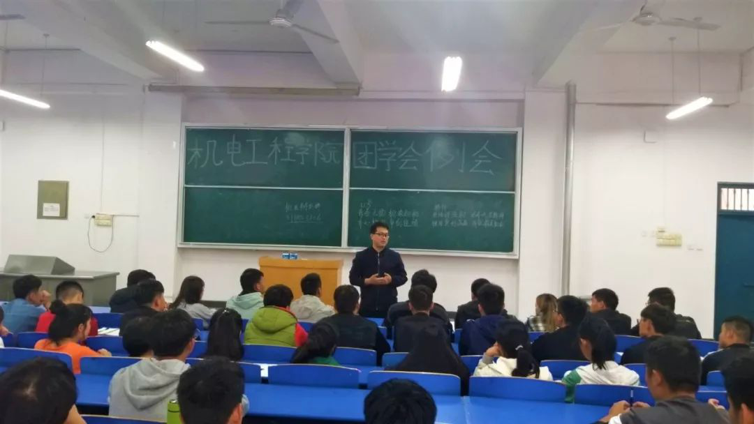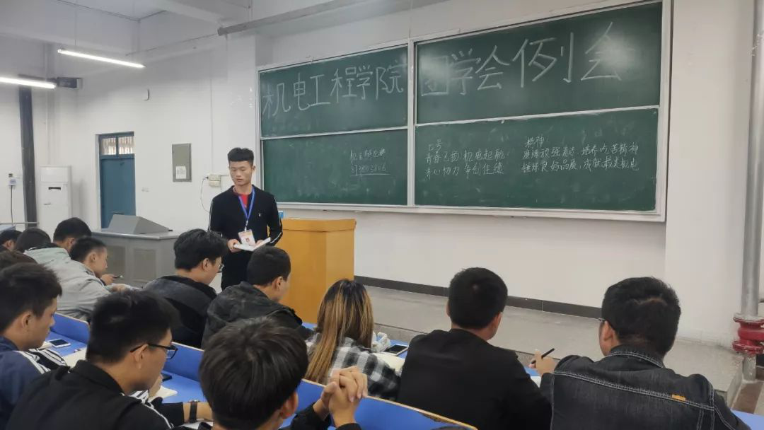 首先团学会毕德坡主席讲话。他讲到:非常欢迎大家加入AC米兰中文官方网站团学会这个大家庭,作为学长,很想把自己的经历都告诉大家,应该拿怎样的心态去面对大学生活,让大家少走一些弯路。新时代需要新青年,新青年担当新使命。希望学弟学妹们能够珍惜在应院的两年时光,能够找到人生最有力的方向。我祝愿大家在应院的两年生活里一帆风顺,但一些风雨、一些困难挫折对人生也不尽是坏事。希望大家能定下自己的目标,努力达到自己心目中美好的梦想,期待看到你们在接下来这一年里的成长和进步。机电团学会的伙伴们,加油!