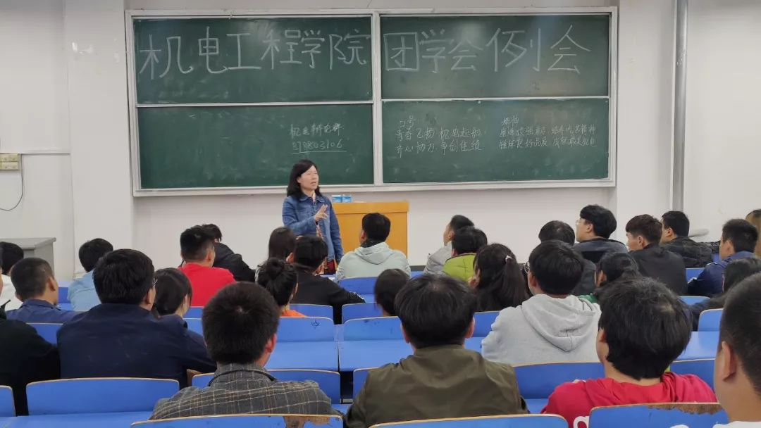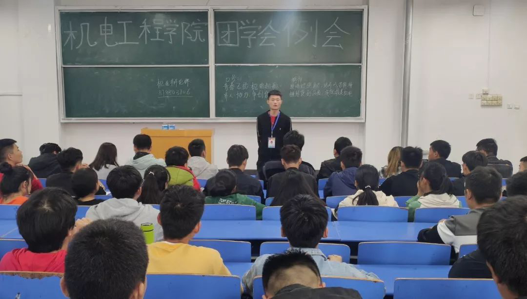 然后侯主任讲话,他讲到:团学会的工作就是要服务师生,同时要积极参加各项活动,这也是提升自己综合能力的机会,更要在活动中起到带头作用。通过团学会的磨练,可以增加自己的见识,这是一种无形的财富,希望同学们在机电团学会这个大家庭能够不断进步,同时为学院的进一步发展做出贡献!