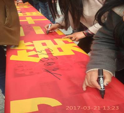 2017年3月22日是第二十五届“世界水日”,3月22-28日是第三十届“中国水周”。以“世界水日”、“中国水周”为契机,通过此次标语签名的形式,也让学生意识到水资源的重要性,也使广大同学树立从小事做起,从个人做起,努力把我校建成节水型高校的信心。节水行动从我做起,永不止步!