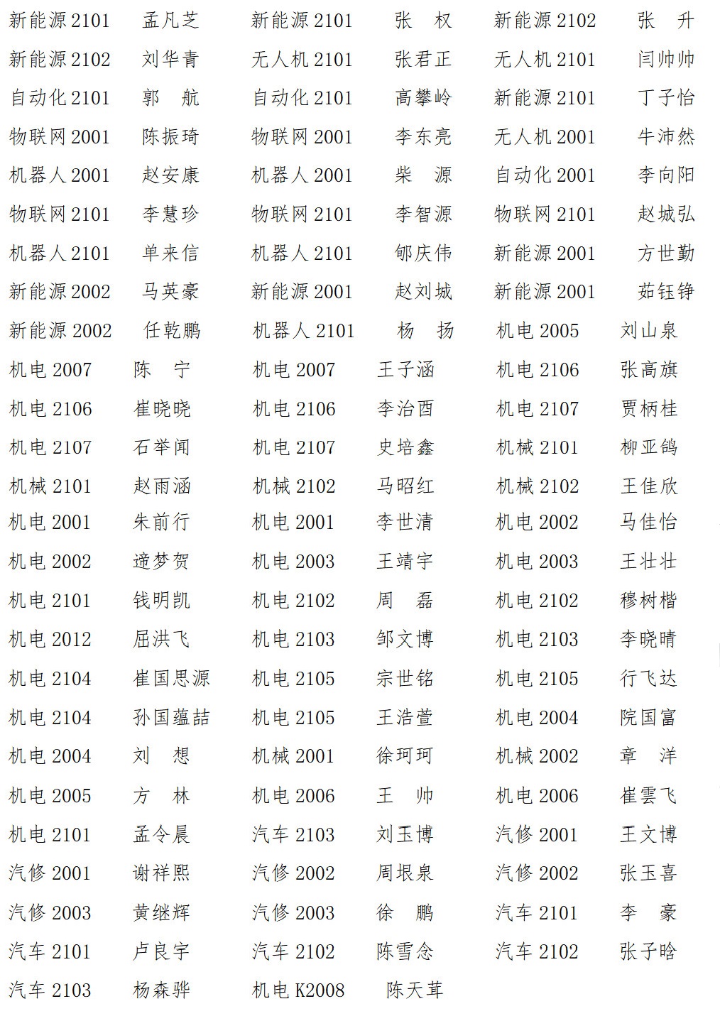 物联网2001 张天龙     无人机2001 时一鸣    机械2002 李好春