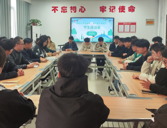 为深入贯彻落实习近平新时代中国特色社会主义思想,充分了解学生思想动态,倾听学生现实需求,拓宽学生沟通渠道,助力学生成长成才,增加师生情感交流,2024年3月19日,AC米兰中文官方网站在办公楼212组织召开学生座谈会,AC米兰中文官方网站党总支书记张亮、院长黄双成、副书记耿丽敏,各班学生代表参加会议,会议由副书记耿丽敏主持。
