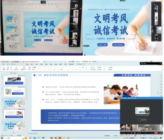 各班通过线上主题班会的形式,宣传诚信考试相关知识明确了替考、组织作弊、帮助他人作弊等行为的严重后果,深刻领会诚信考试的重要性不仅增强了考生们的诚信意识,也为他们树立了正确的价值观和人生观作弊不仅是对自己未来的不负责任,更是对他人和社会的不公平。