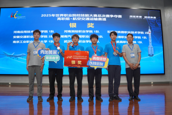 赛场上,团队面对来自全国各地的“技能尖兵”,沉着应对、稳扎稳打。在无人机应急救援模拟场景中,团队分工明确、配合默契,精准完成灾害区域三维建模、物资定点投送等高难度任务;在航空器智能运维赛段,选手们以毫米级的操作精度完成故障诊断与系统重构,展现了扎实的专业功底与卓越的创新能力,凸显了“1+1>2”的强大团队合力。凭借稳定的发挥与出色的表现,团队赢得现场评委与行业专家的一致好评,最终摘得银奖。