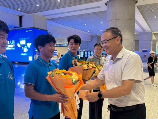 载誉归来之际,黄振中专程前往高铁站迎接获奖团队。他向指导老师、参赛选手表示热烈祝贺和亲切慰问,并指出,这一奖项的获得是学校职业教育发展的又一重要成果,希望学校师生们以本次比赛为新起点,再接再厉、深耕不怠,以更为优异的成绩为学校事业高质量发展贡献更大力量。团队成员向学校党委给予团队的关心、指导和帮助表示感谢,他们表示将再接再厉,不断把课堂所学与实际应用紧密结合,力争取得更好成绩。